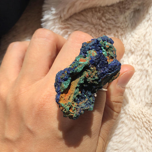 Raw Azurite Malachite Crystal Ring | The Forest | Sparkling Blue
