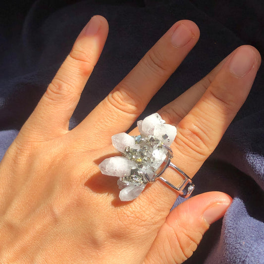 Raw Pyrite Quartz Cluster Stone Crystal Adjustable Ring | Wealth & Abundance